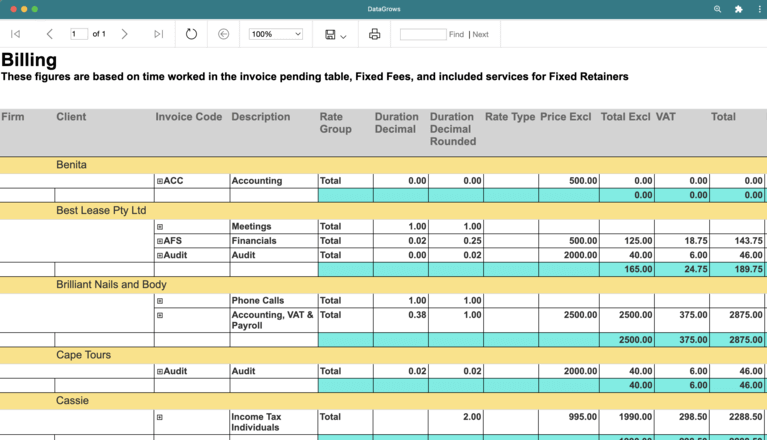 - Time worked per client